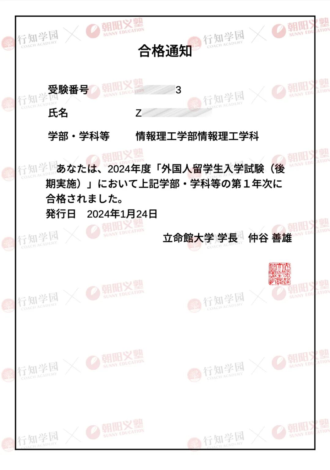 我们荣幸地邀请到获得8所院校合格大满贯的优秀毕业生——钟同学,她同时合格了立命馆大学、法政大学、中央大学、同志社大学、立教大学、关西学院大学、顺天堂大学以及关西大学,并获得了文部科学省发放的学习奖学金。接下来,让我们来听听她这段酷炫的考学历程吧。