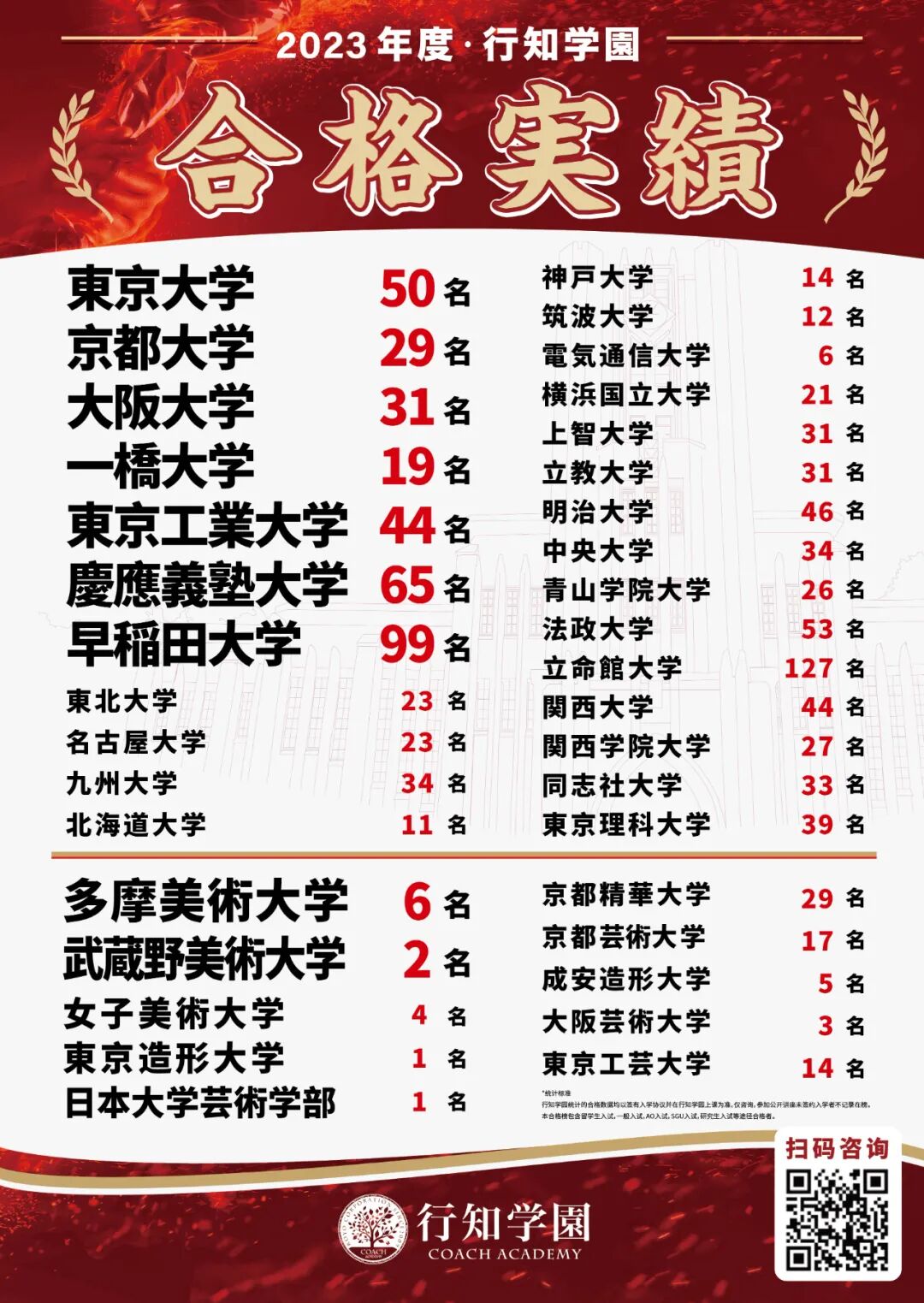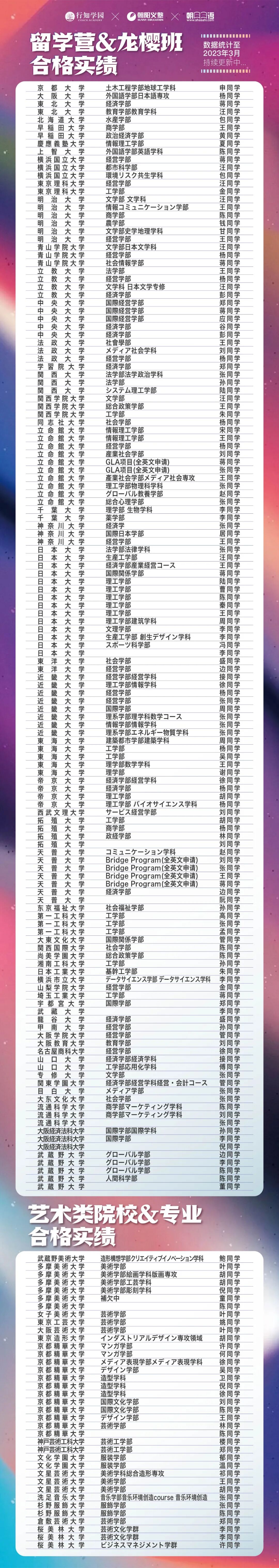 附上「赴日留学营」合格榜单,课程自2018年开办以来,至今合格日本名牌大学数量已破百枚!